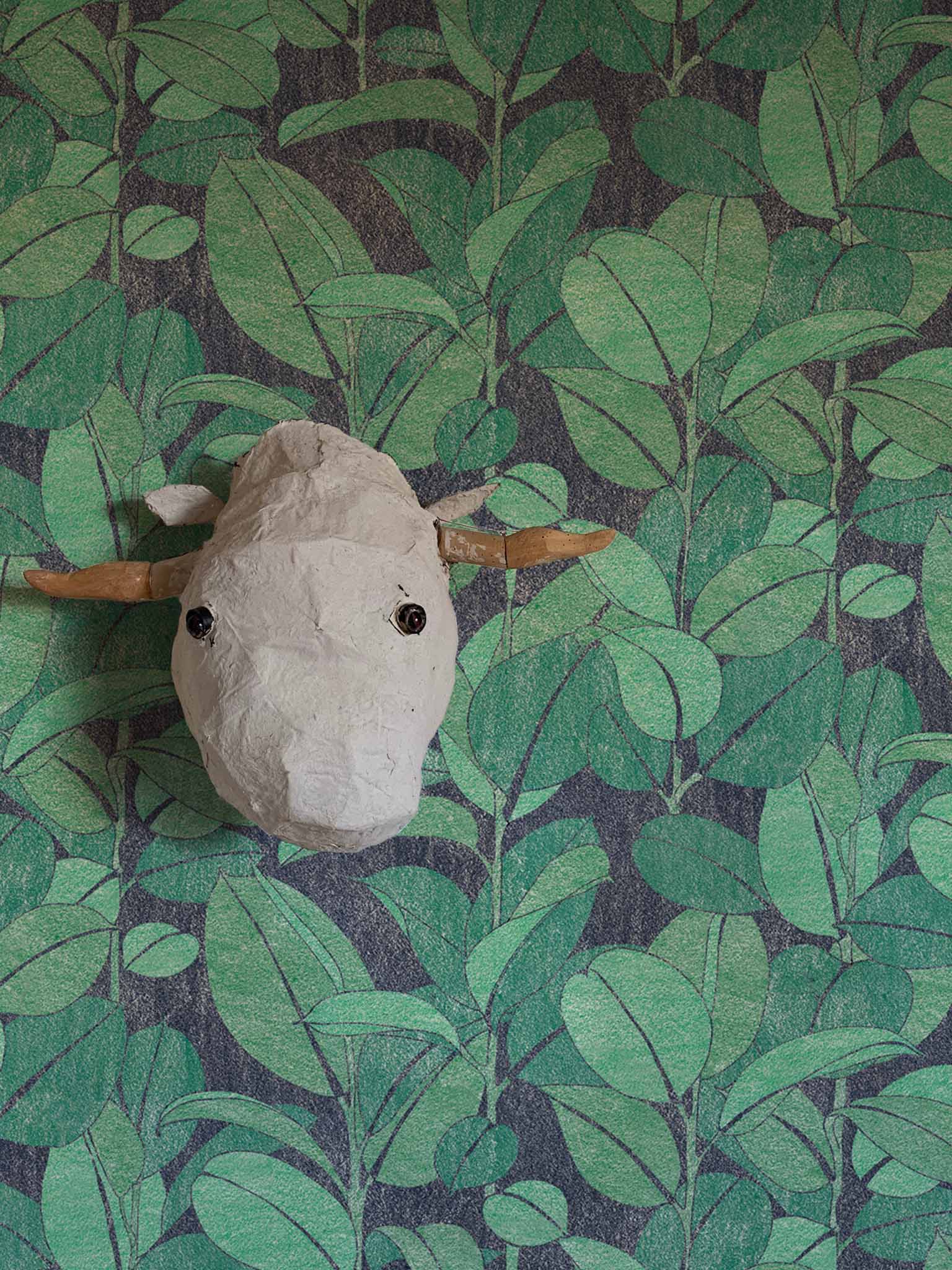 Une approche à la fois graphique et matière pour ce motif qui allie la verticalité de la plante à la texture dynamique du crayonné.