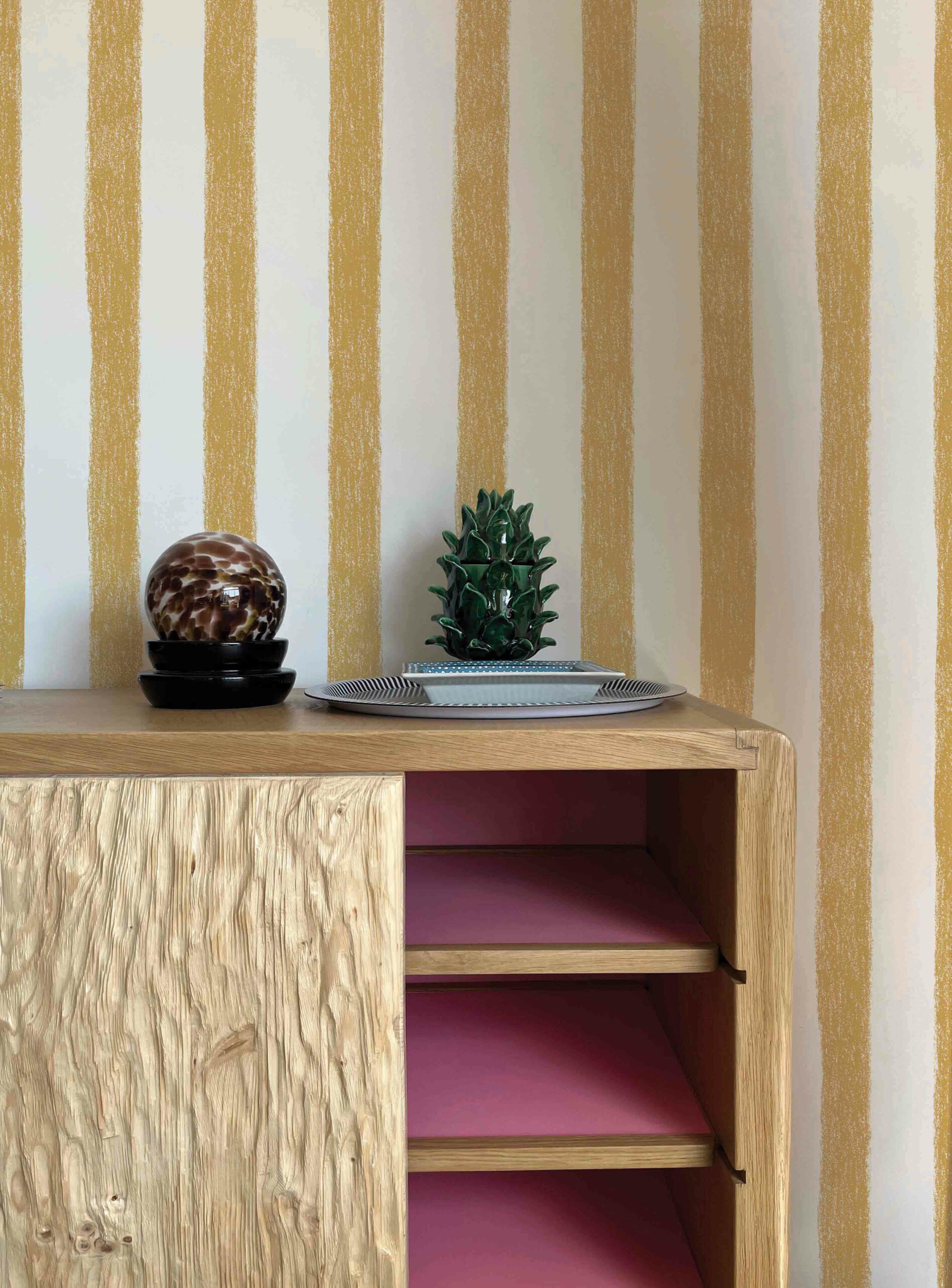 Vibrez pour la verticalité, l’esprit intemporel, pour le grain et les couleurs franches, pour ce motif à la fois classique et brut.