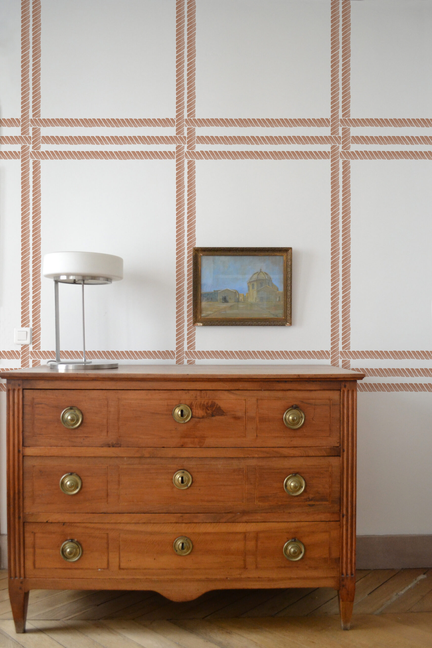 Dessiné au pastel sec, ce tressage se veut réaliste et léger, de quoi parer vos murs d’une élégante simplicité.